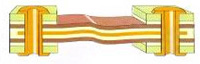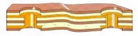 軟件電路板和硬板經(jīng)熱合封裝在一起。通過PTH導(dǎo)電。 |